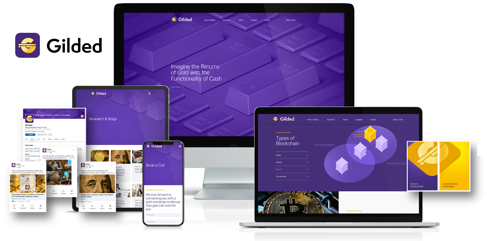 We focused on evolving the Gilded identity rather than rebranding it to better align with its blockchain-based mission. Our digital team redesigned the website with a cleaner, more modern aesthetic and a streamlined information architecture, ensuring the user experience matched the platform's intuitive nature. Across both design and content, we emphasized speed, security, and transparency.
